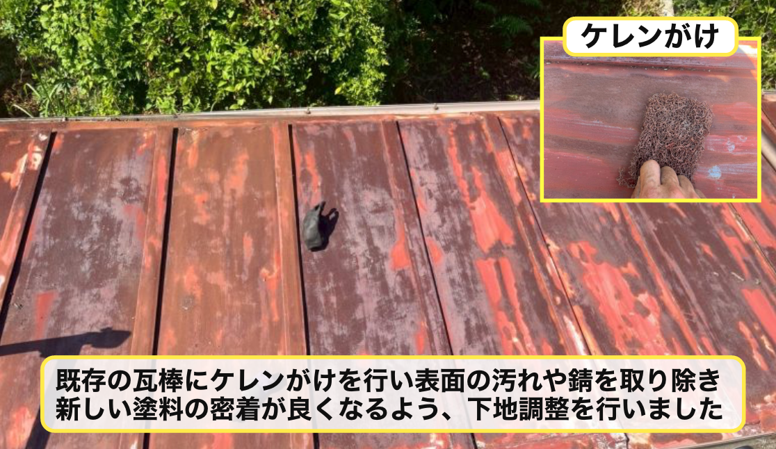 塗装の際は表面の錆をケレン掛けでしっかり落とし