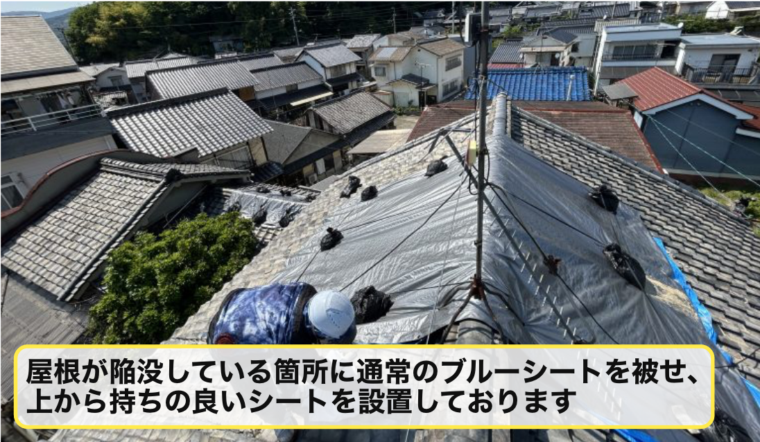 もしお客様ご自身で応急処置をされる場合は充分に安全確保を行った上で行ってください。屋根のプロでも安全面を考慮し、一人で作業することはほとんどありませんし、普段から充分に安全面に配慮して作業を行っております。