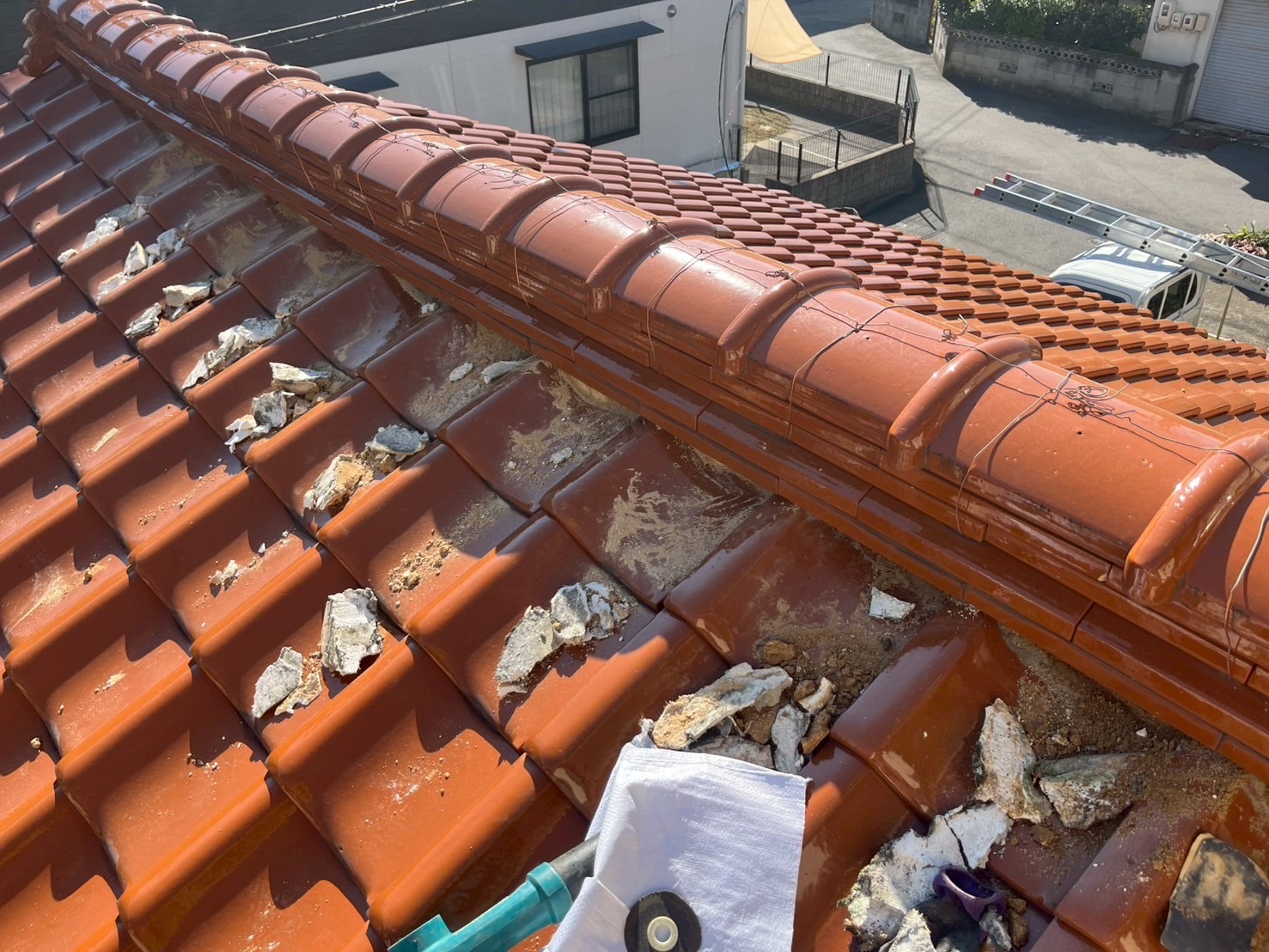 上塗りばかりすると、瓦からはみ出てしまい、雨漏りする恐れがあります。