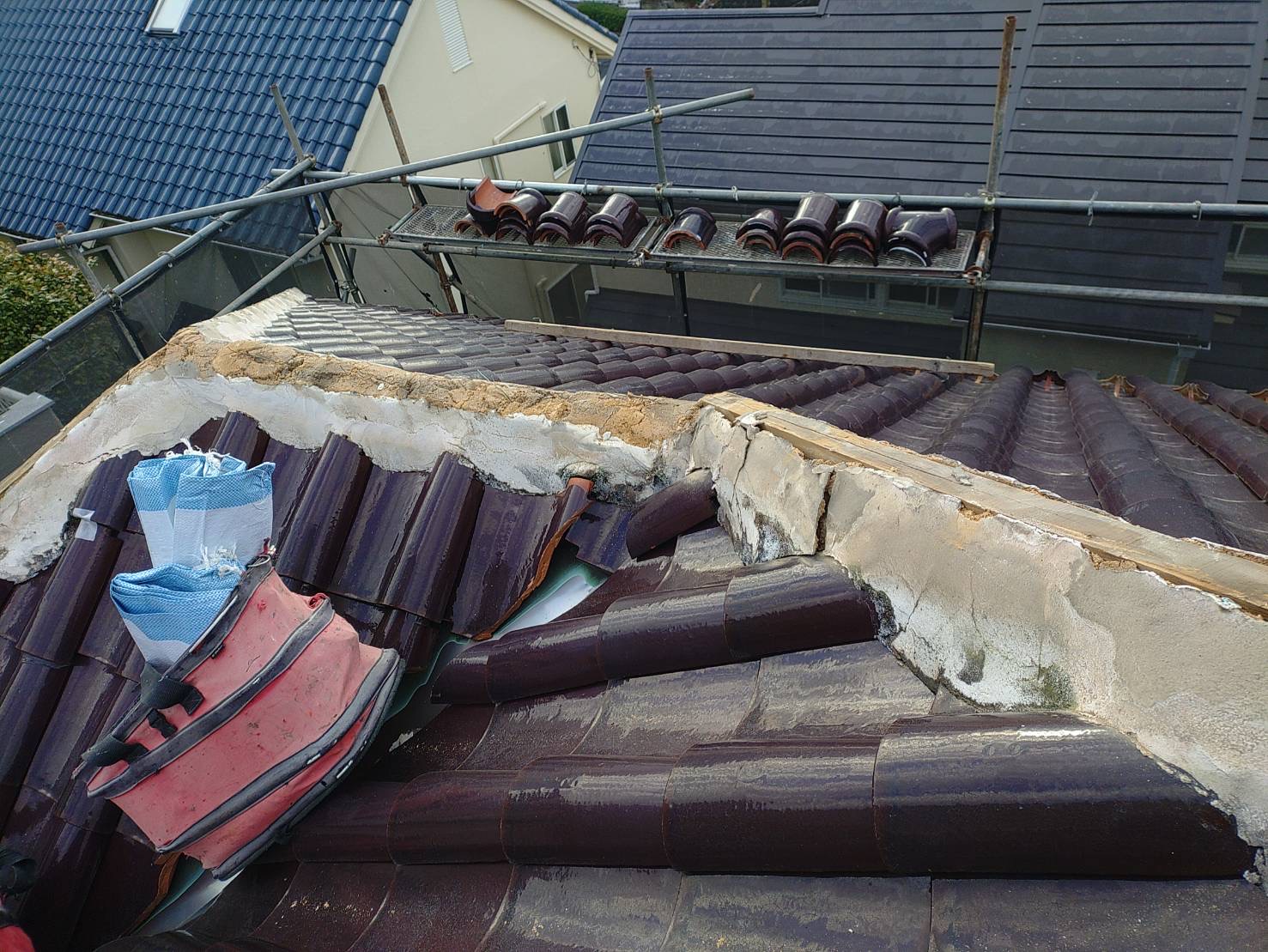 その際に既存の棟はのし瓦という瓦を重ねて
