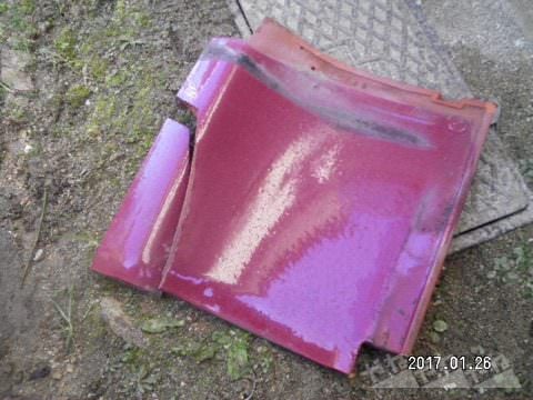 2階の屋根から1階の屋根への雪の落下で瓦が割れてしまったそうです。