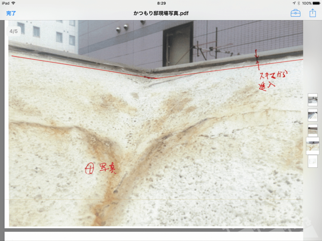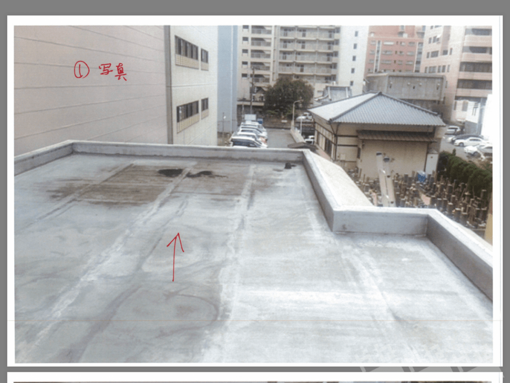 ビルの屋上からの雨漏りでした。お客様のライフプランに合わせ、今回はたちまちコースで部分補修を実施いたしました。