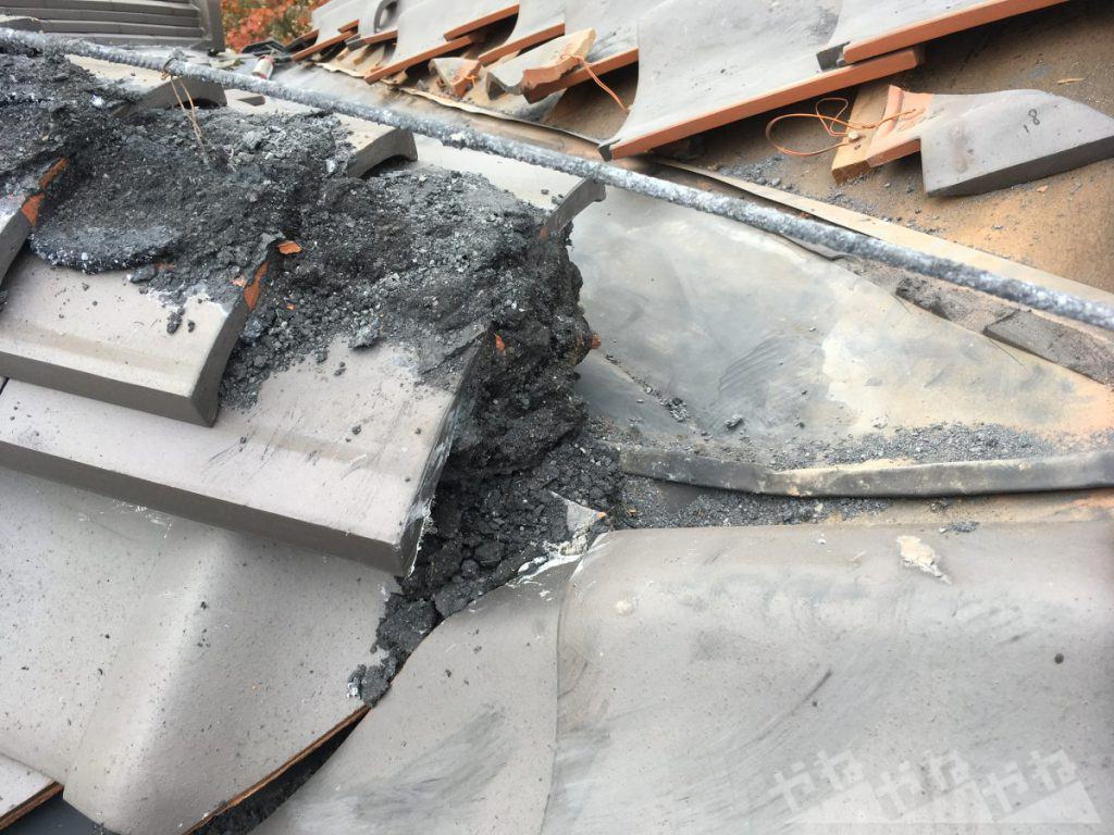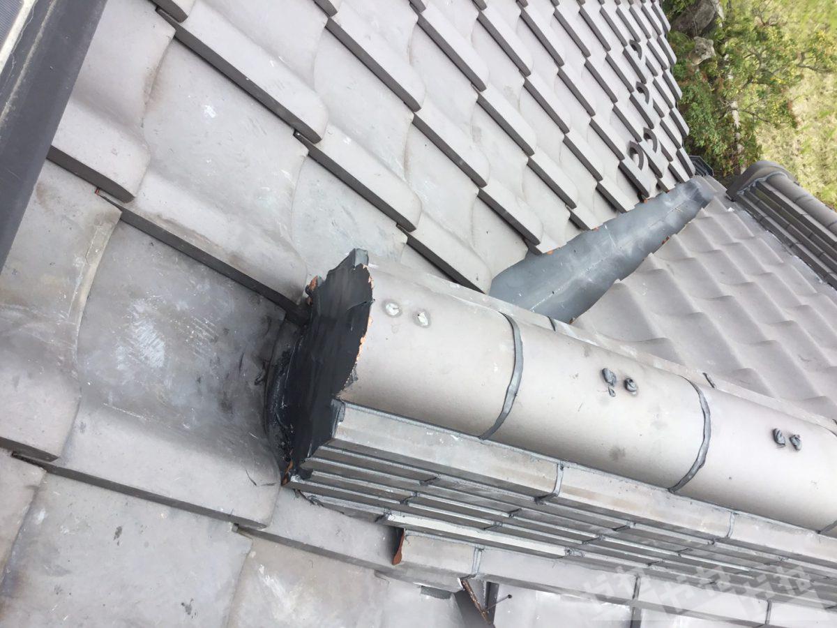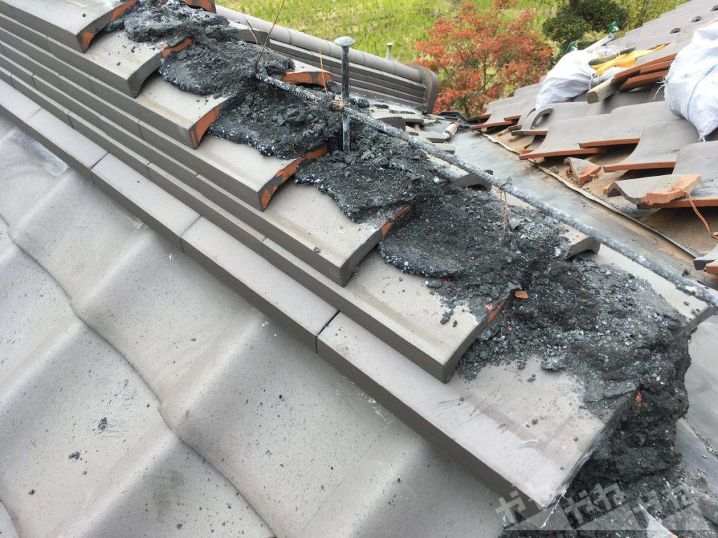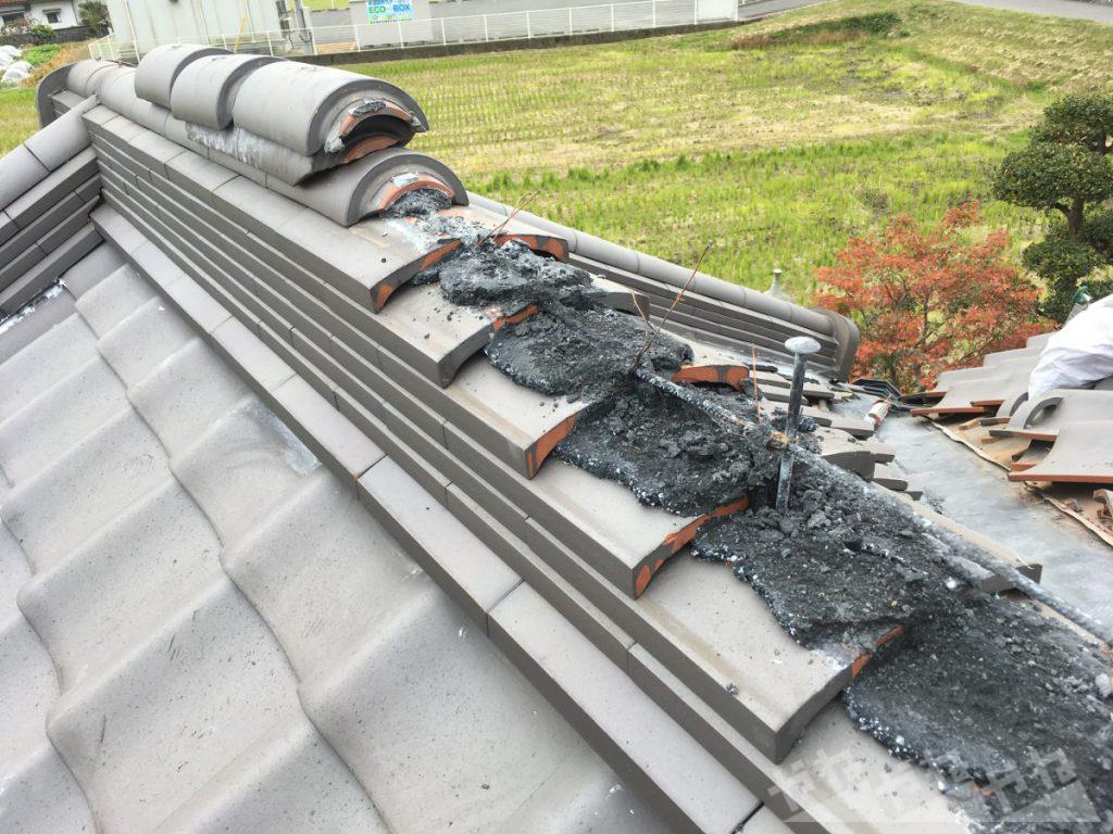診断の結果、棟瓦の損傷が見られ土台が崩れていたため、棟瓦の伏せ替え施工を実施しました。