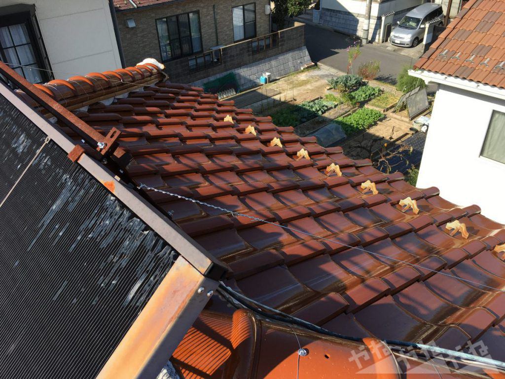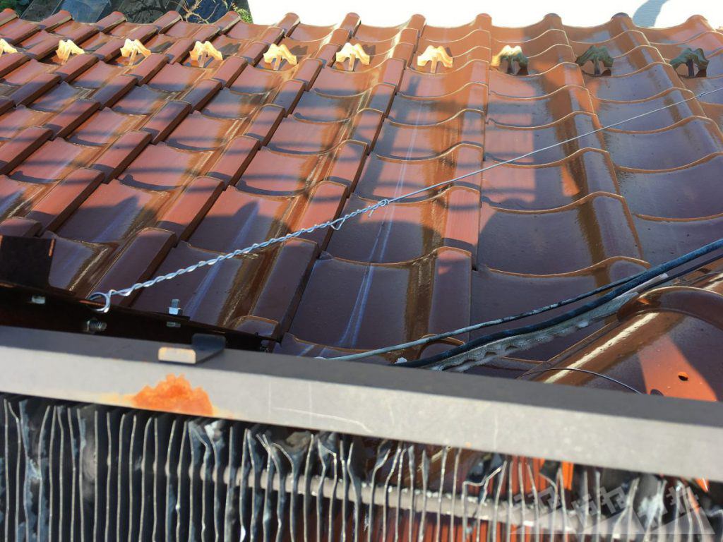屋根の点検を実施したところ、太陽熱温水器の配管の詰まりや番線の緩み、瓦割れがありましたので、合わせて補修、メンテナンスを実施いたしました。