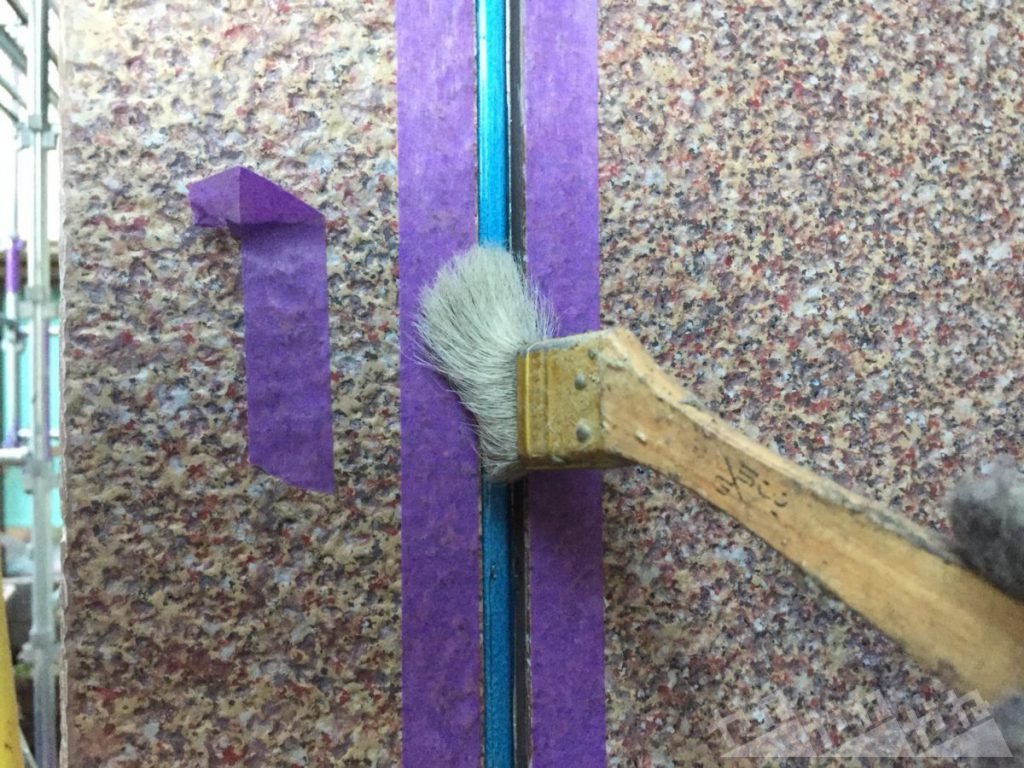 外壁のコーキングの切れによる雨漏りで、経年劣化も含めコーキングは痩せて離れていましたので全面的に目地コーキングの補修施工を実施いたしました。