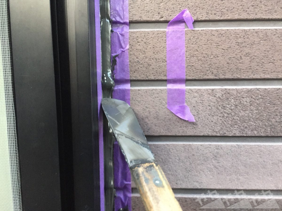 サイディング外壁の雨漏りで、外壁面、窓枠周りなど目地の劣化部分を補修施工させて頂きました。