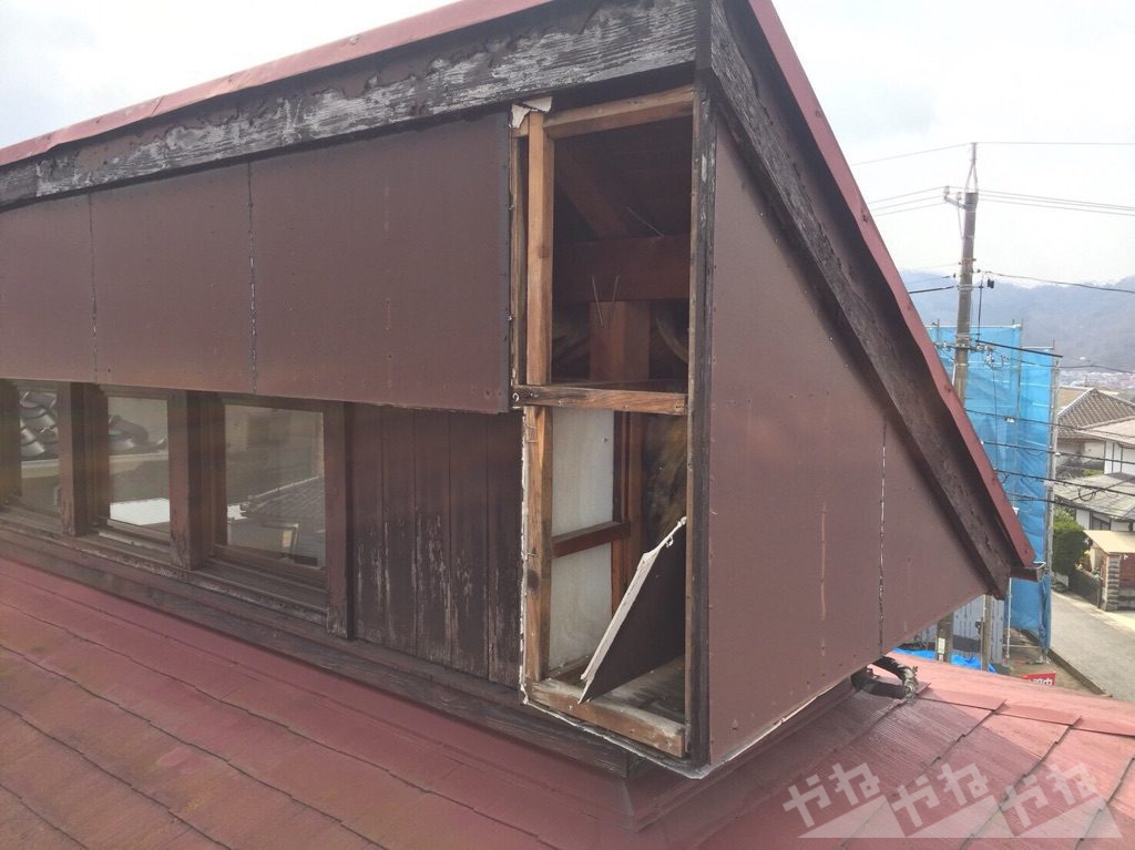 トップライトの壁が春の突風で破損しており、ご近所の方が気付かれて教えて頂いたそうです。