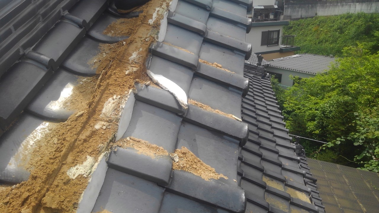 赤土が負荷している下り棟をバラし、伏せ替え工事を行いました。
