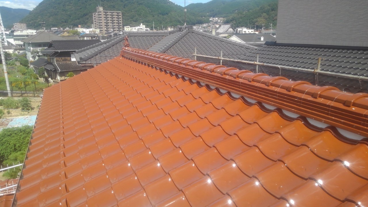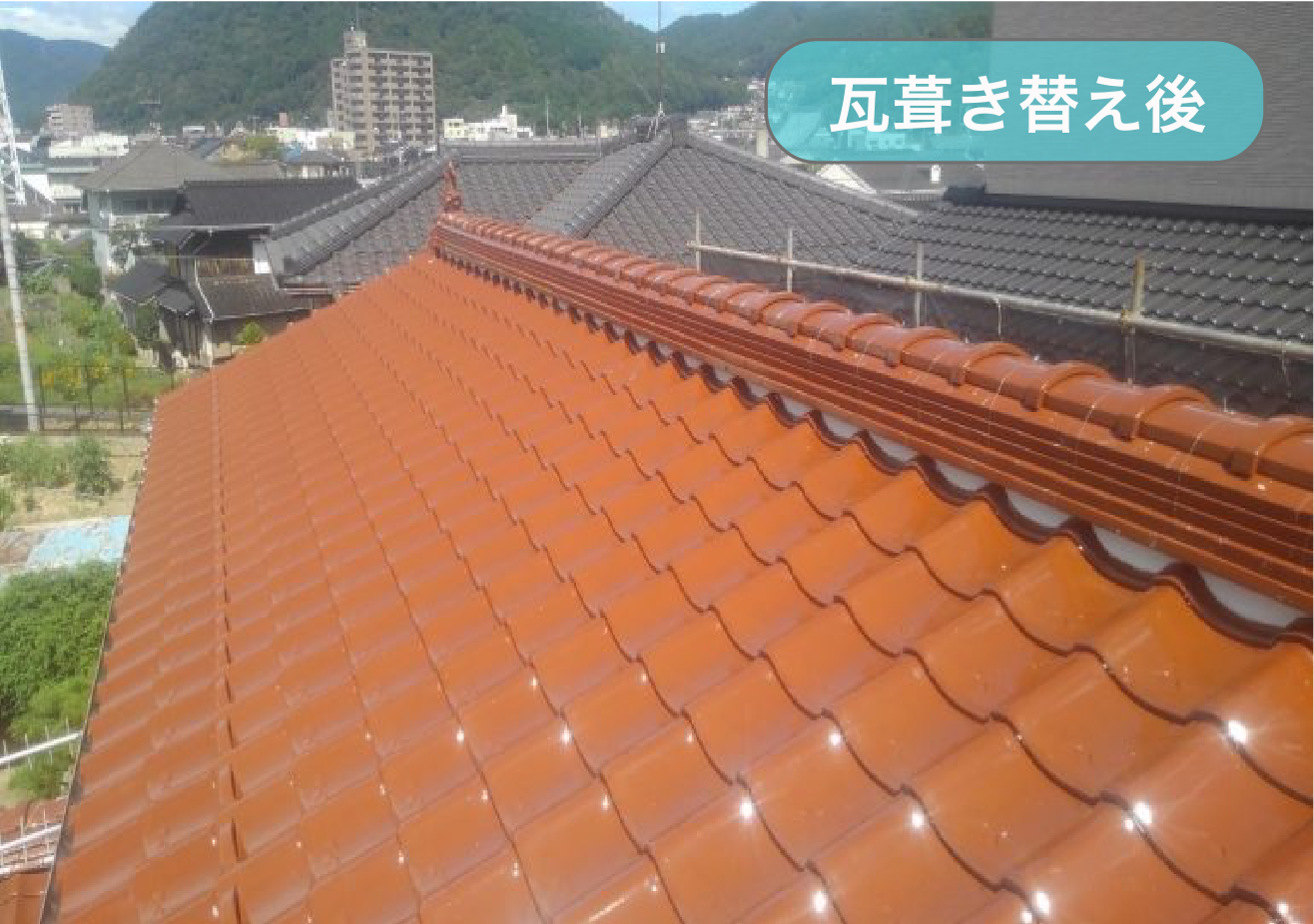 - 雨漏りの原因となっている2階部分の瓦屋根を新しい瓦へ葺き替え