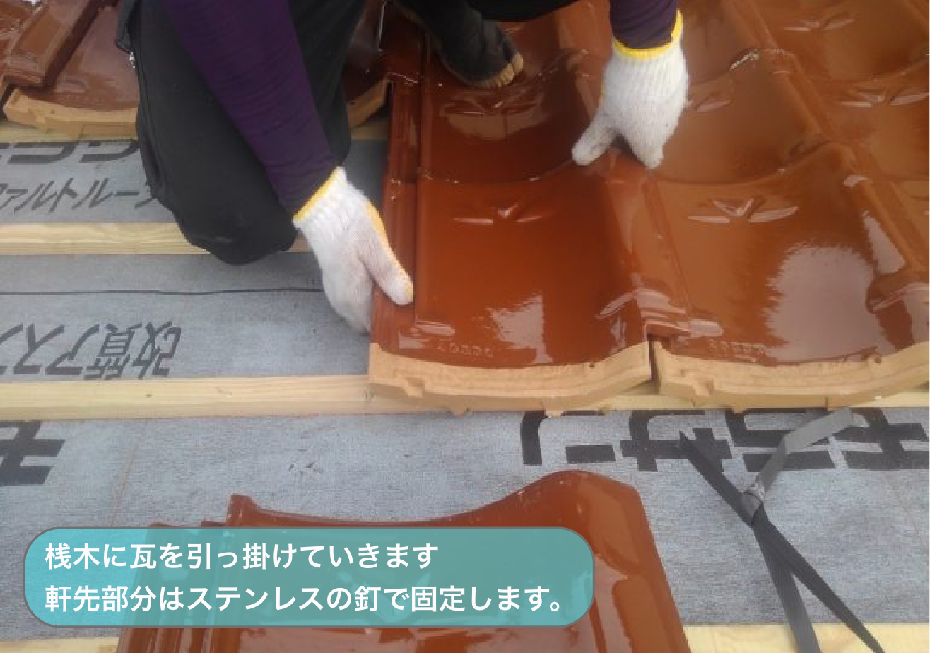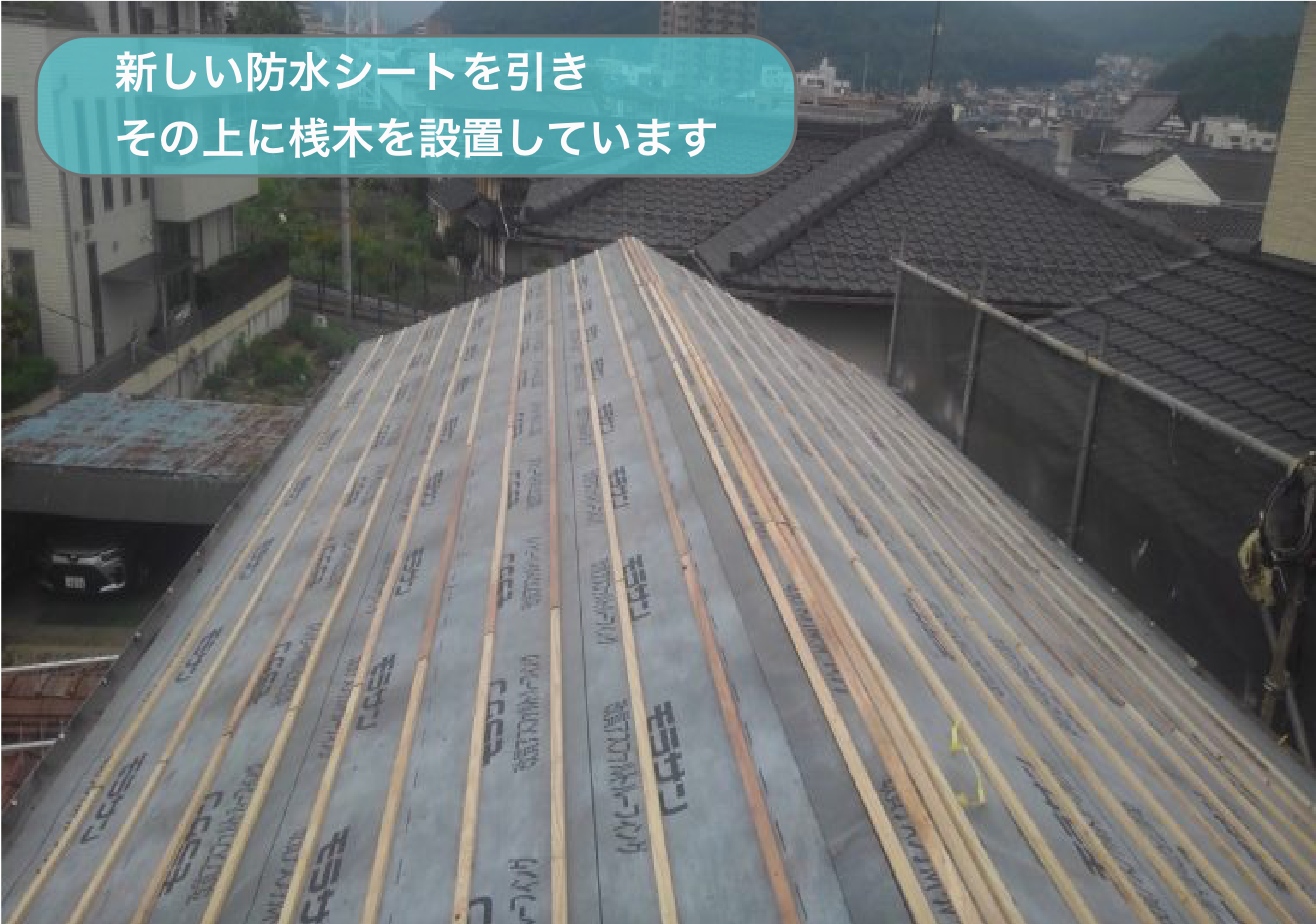 葺き替え工事はこの桟木に瓦を引っ掛けていきます。