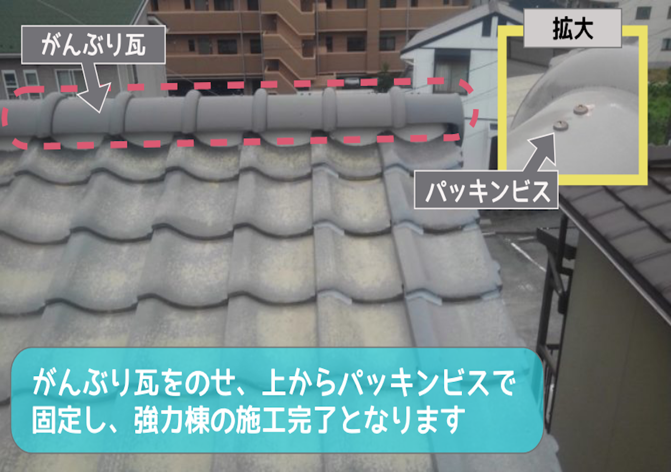 また、がんぶり瓦を積んだ後には上からビスを打ち固定していますが