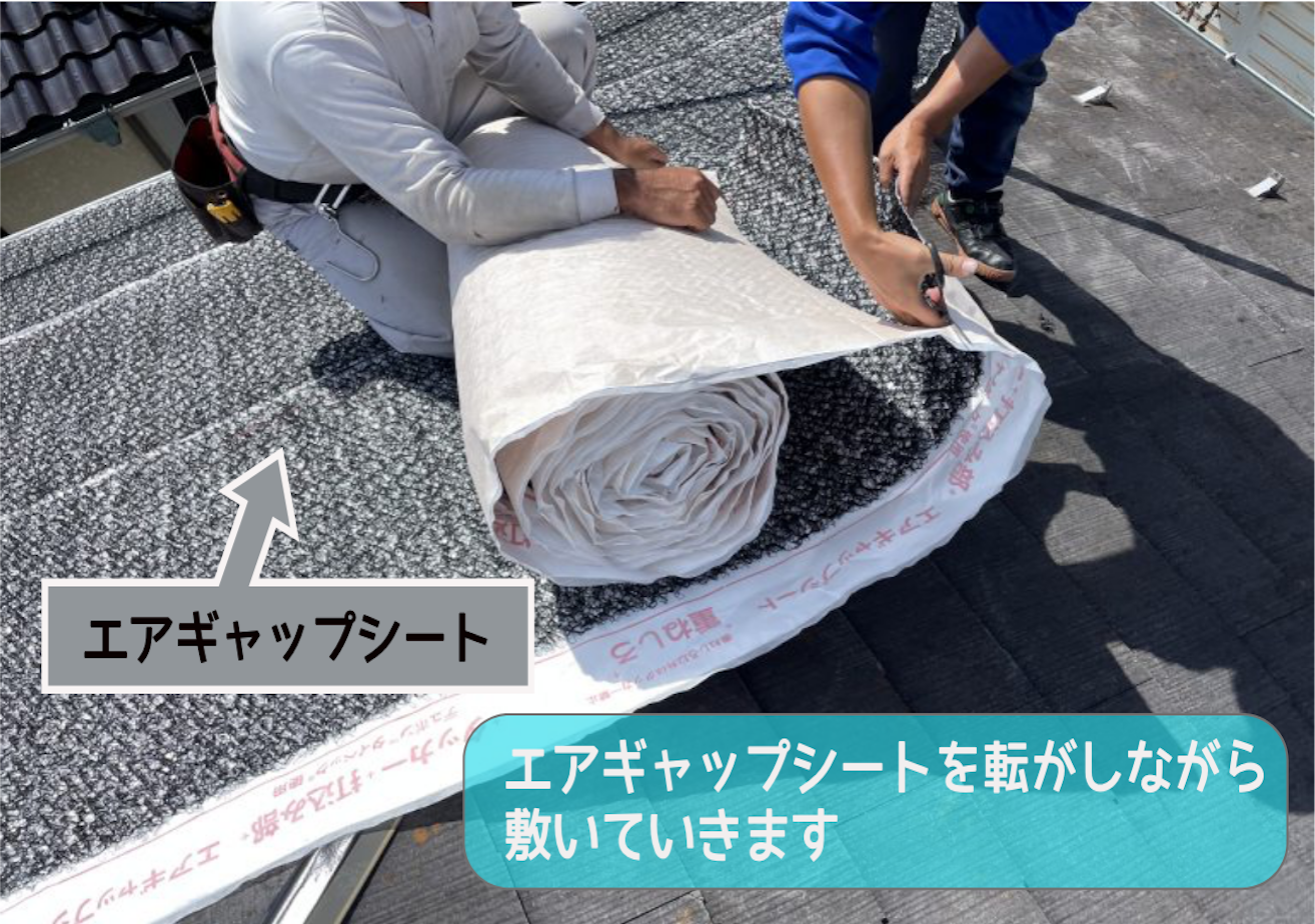 また、屋根の長寿命化させるため今回はエアギャップシートという