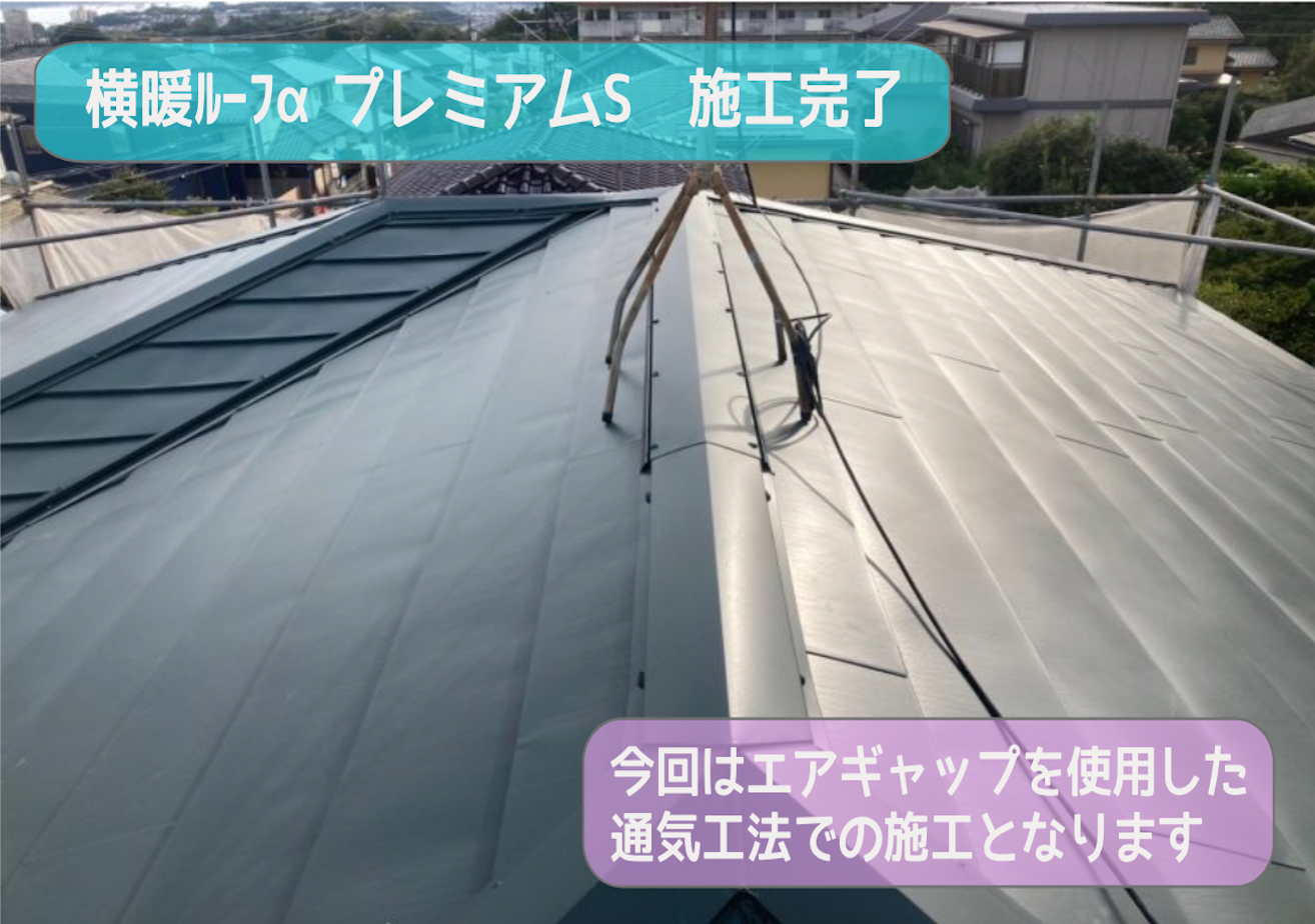 屋根カバー工法 横暖ルーフαプレミアムS エアギャップ 廿日市市福面