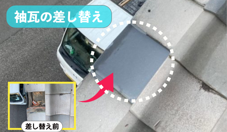 屋根の袖部分の瓦は新たに発注して差し替えを