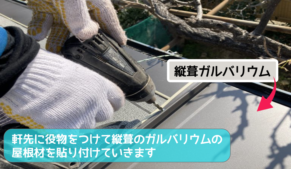 頂き、今回縦葺のガルバリウムで施工を進めて
