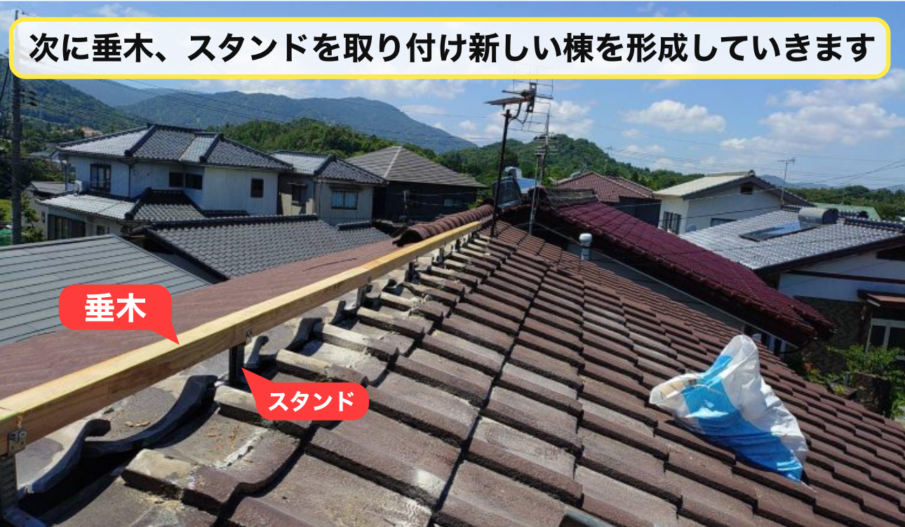 - 雨漏りの原因になっていた棟をばらし、新たに強力棟として仕上げました。