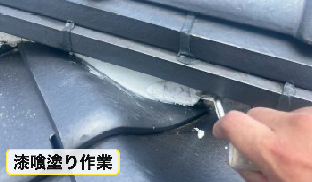 - 屋根漆喰塗り・谷板金交換・瓦どめ工事