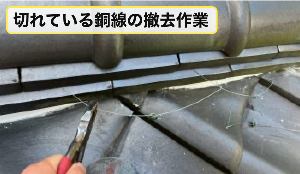 切れている既存の銅線をカットし撤去をしていきました。