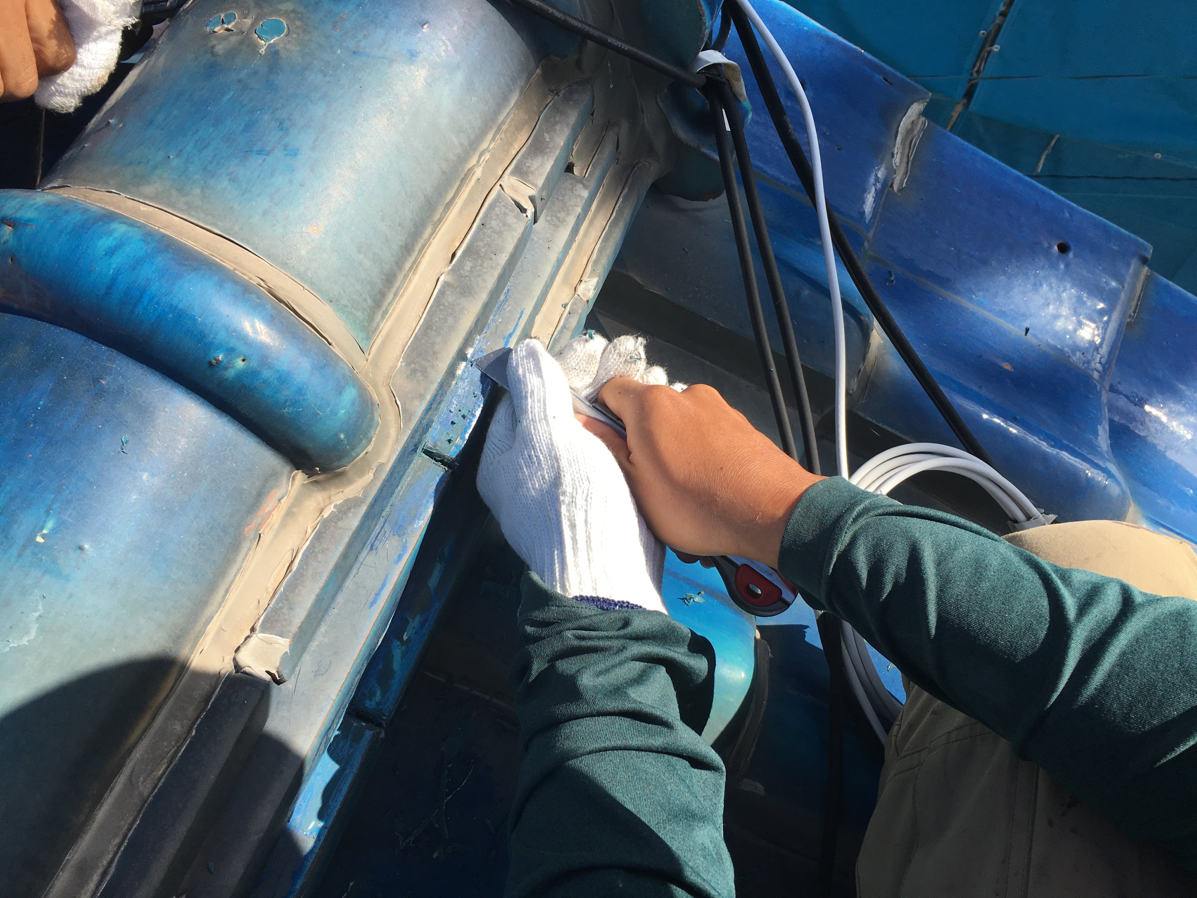 その後コーキングにて接合部を内側から止水していきました。