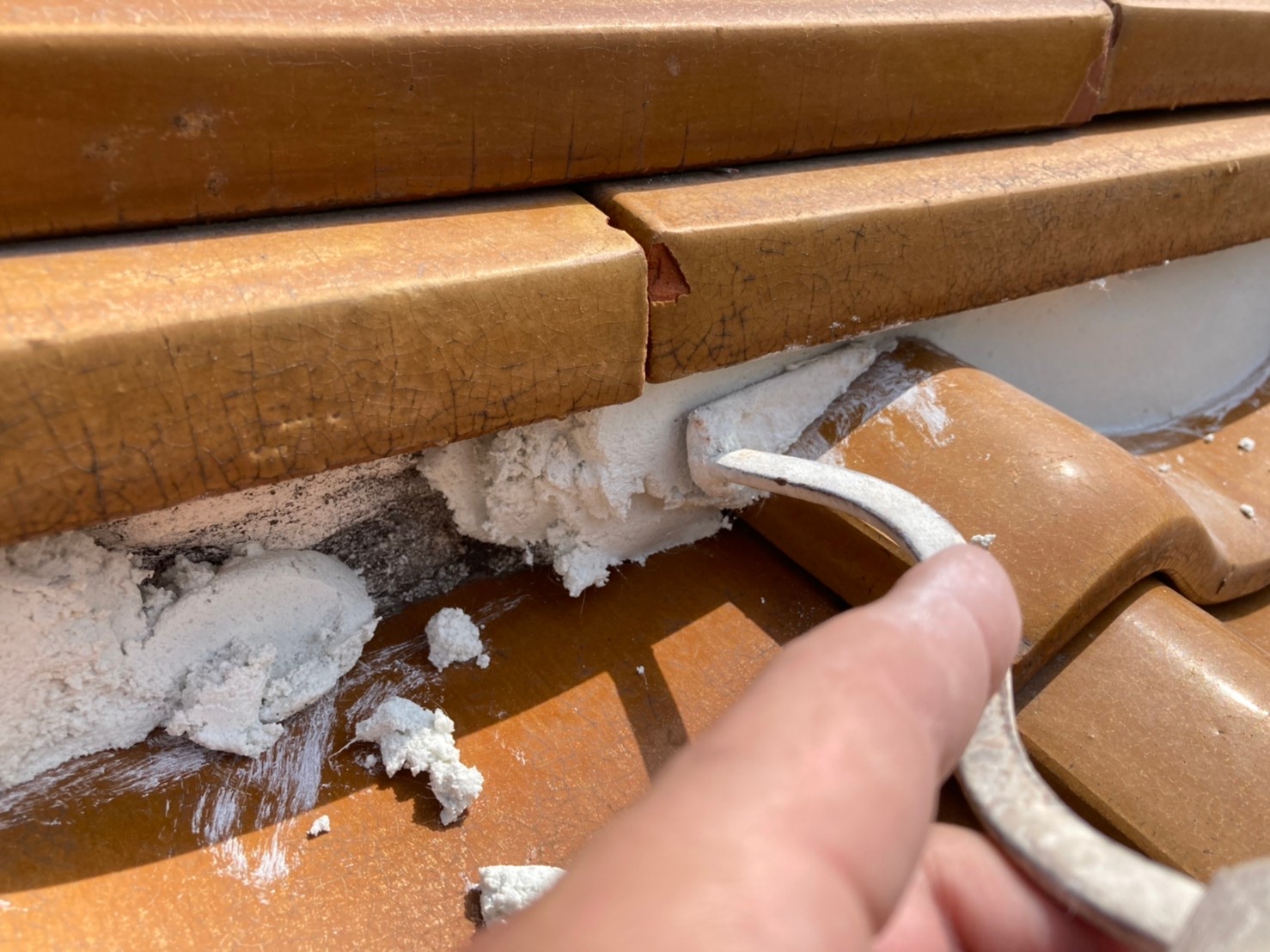 他にも工事中に気になった瓦のヒビが入っている部分なども処理しています。