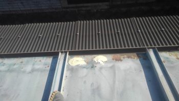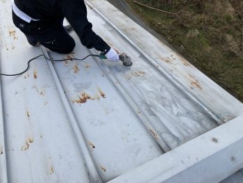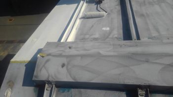 コーキング作業と並行して屋根塗装1回目のサビ止めの塗布を進めて参りました。