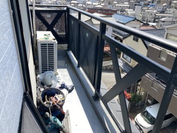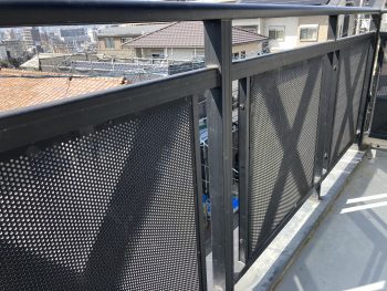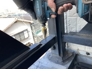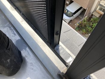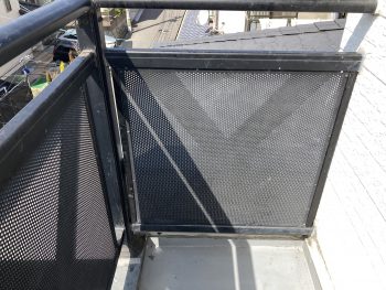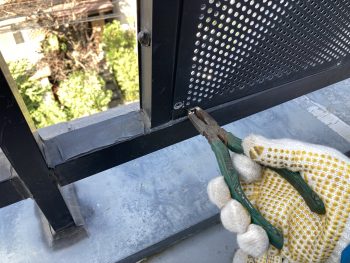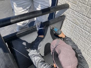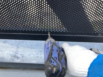 本日はベランダ解体及び復旧工事の方よろしくお願いいたしますまずはパンチングのプレートを外していきます