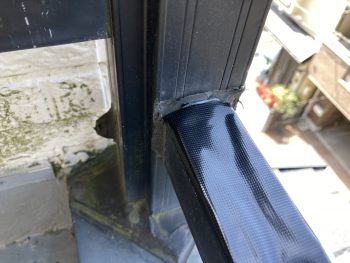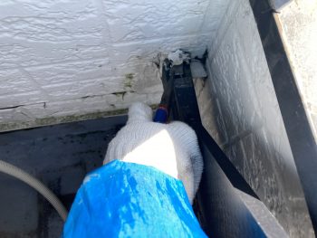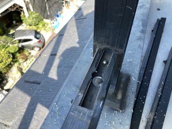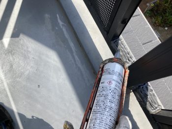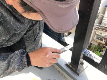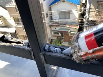 手すりを1部解体することにより、必要な箇所にコーキングを施し、少しでも中に入らないよう防いでおります。万が一中に入ったとしても、水抜き穴から水が抜けていく仕組みとなります。