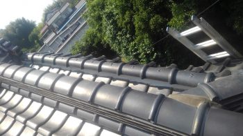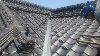 最終日の今日は、棟の瓦どめ工事や谷板金の補修を進めて参ります