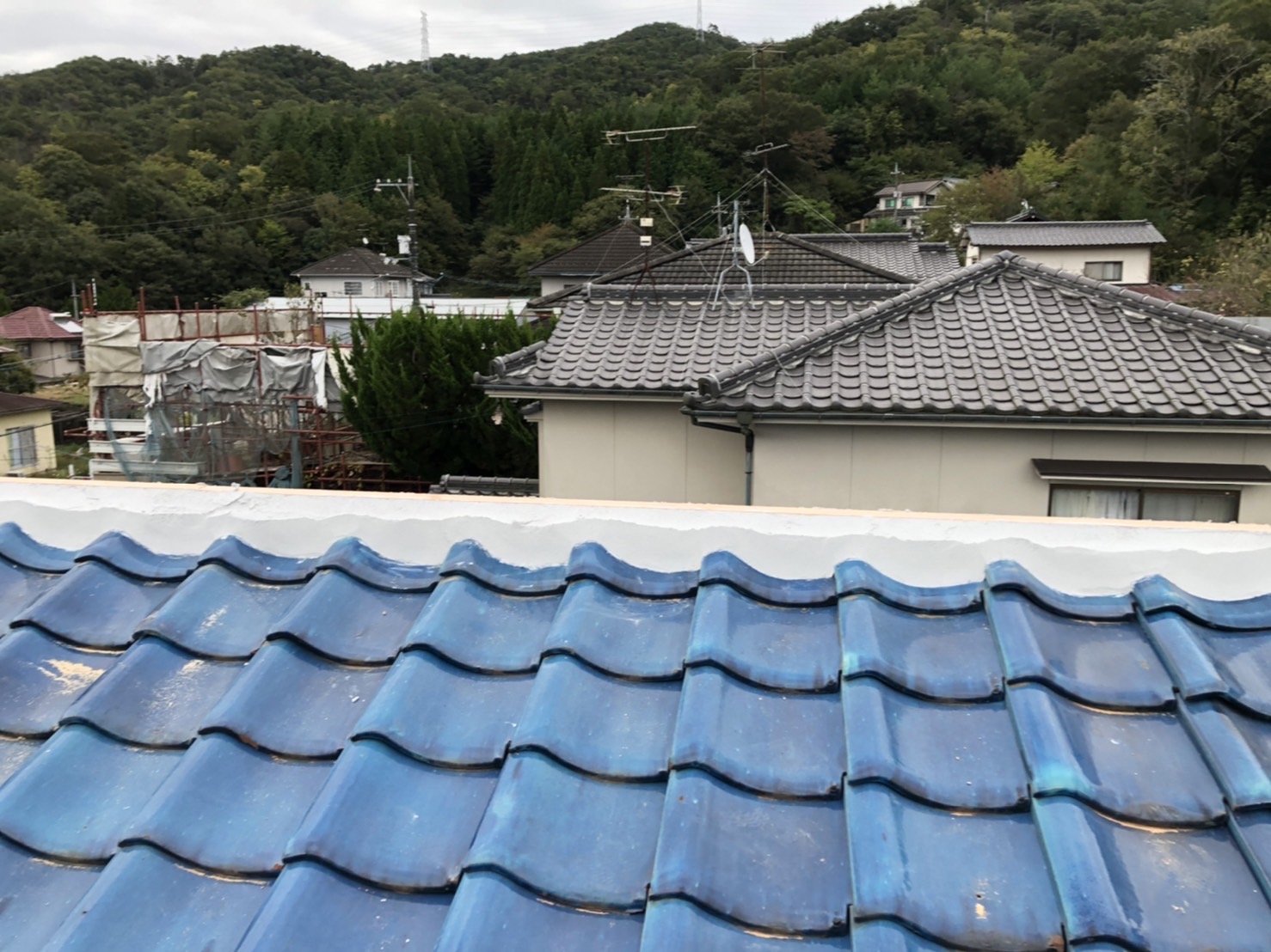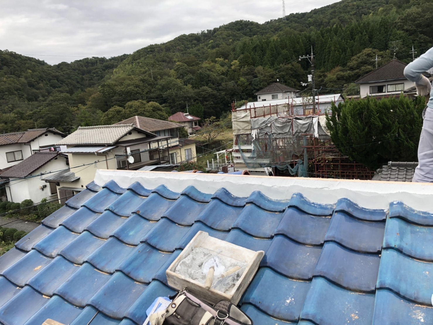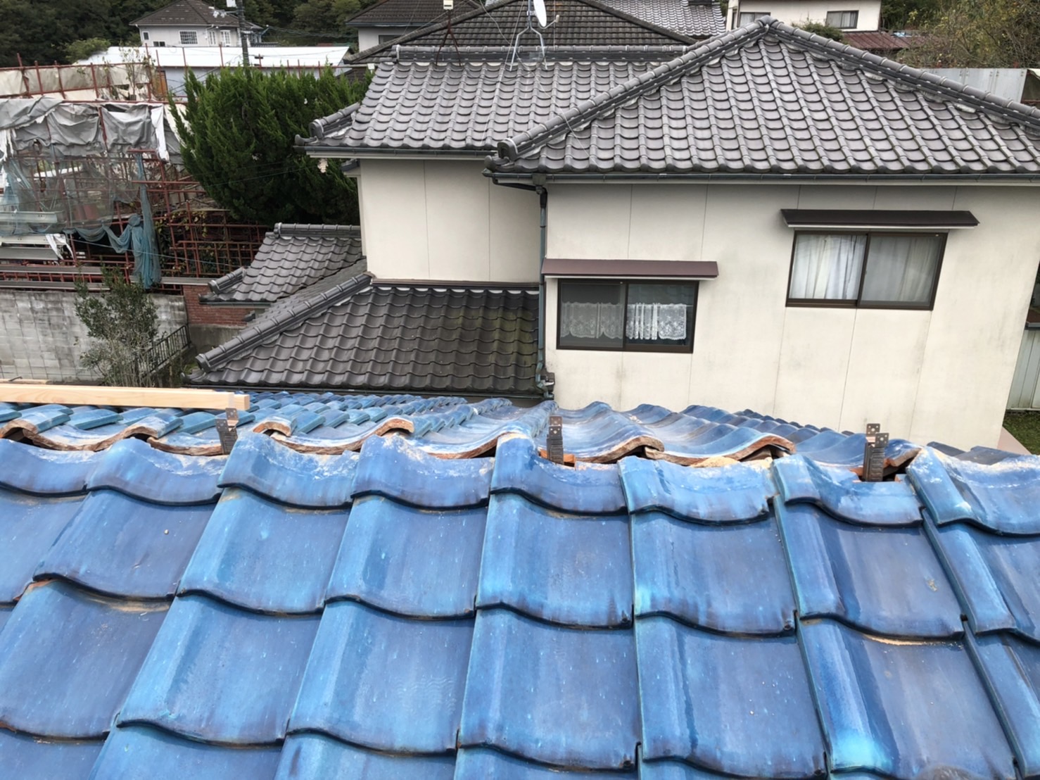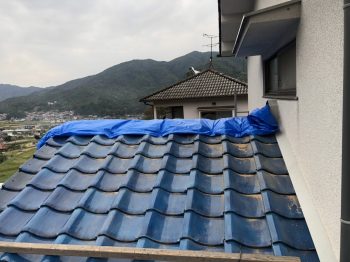 ブルーシートで養生を行い、本日の作業は終了です。