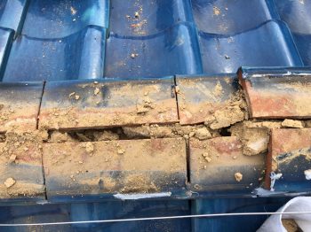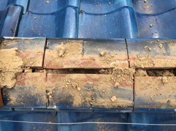 雨漏り部分は、土が減少し、濡れている痕跡がありました。