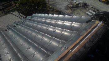 瓦止め作業完了後は掃除と荷上げ昇降機のバラシを行い作業工程が完了となります。