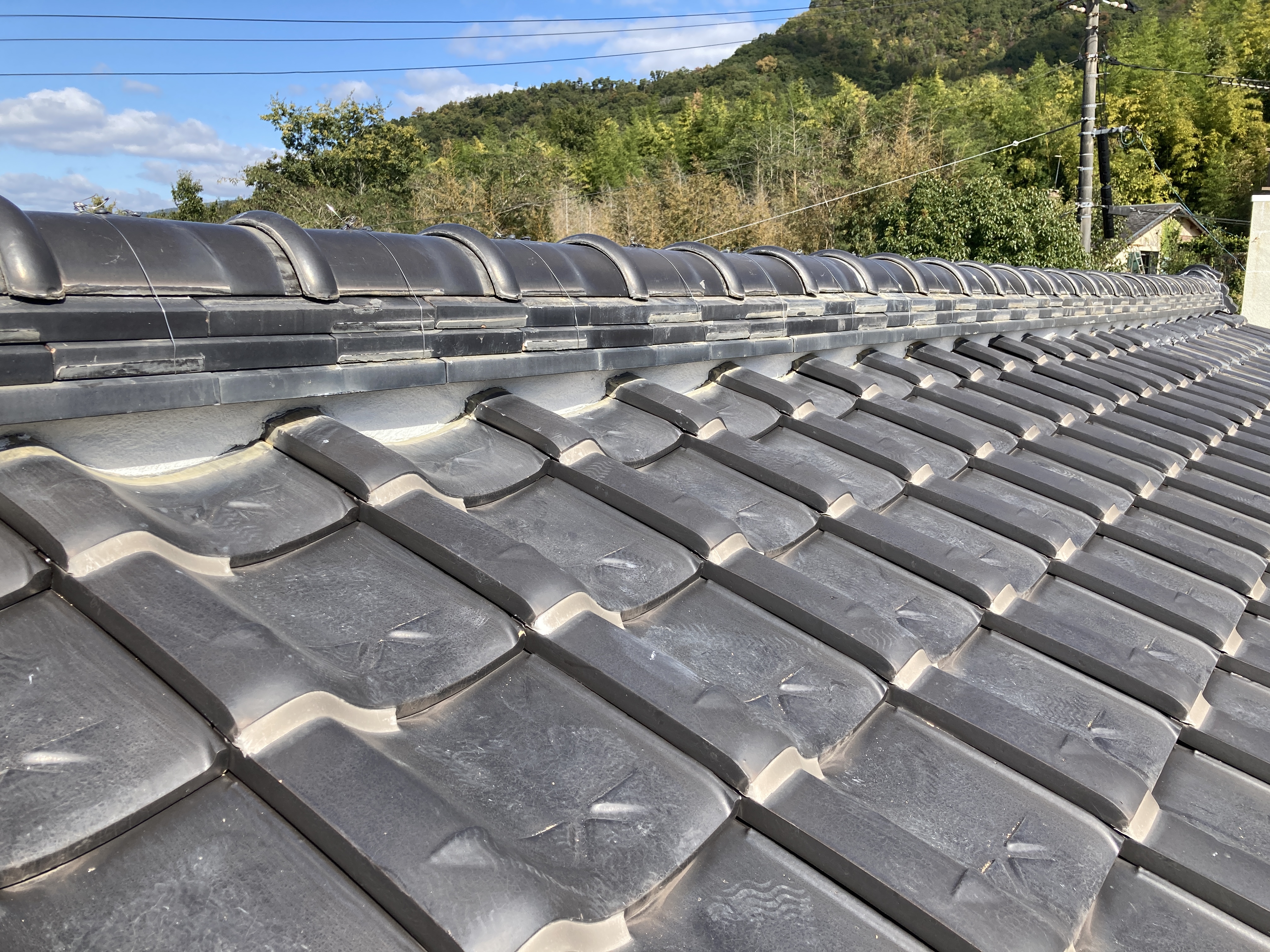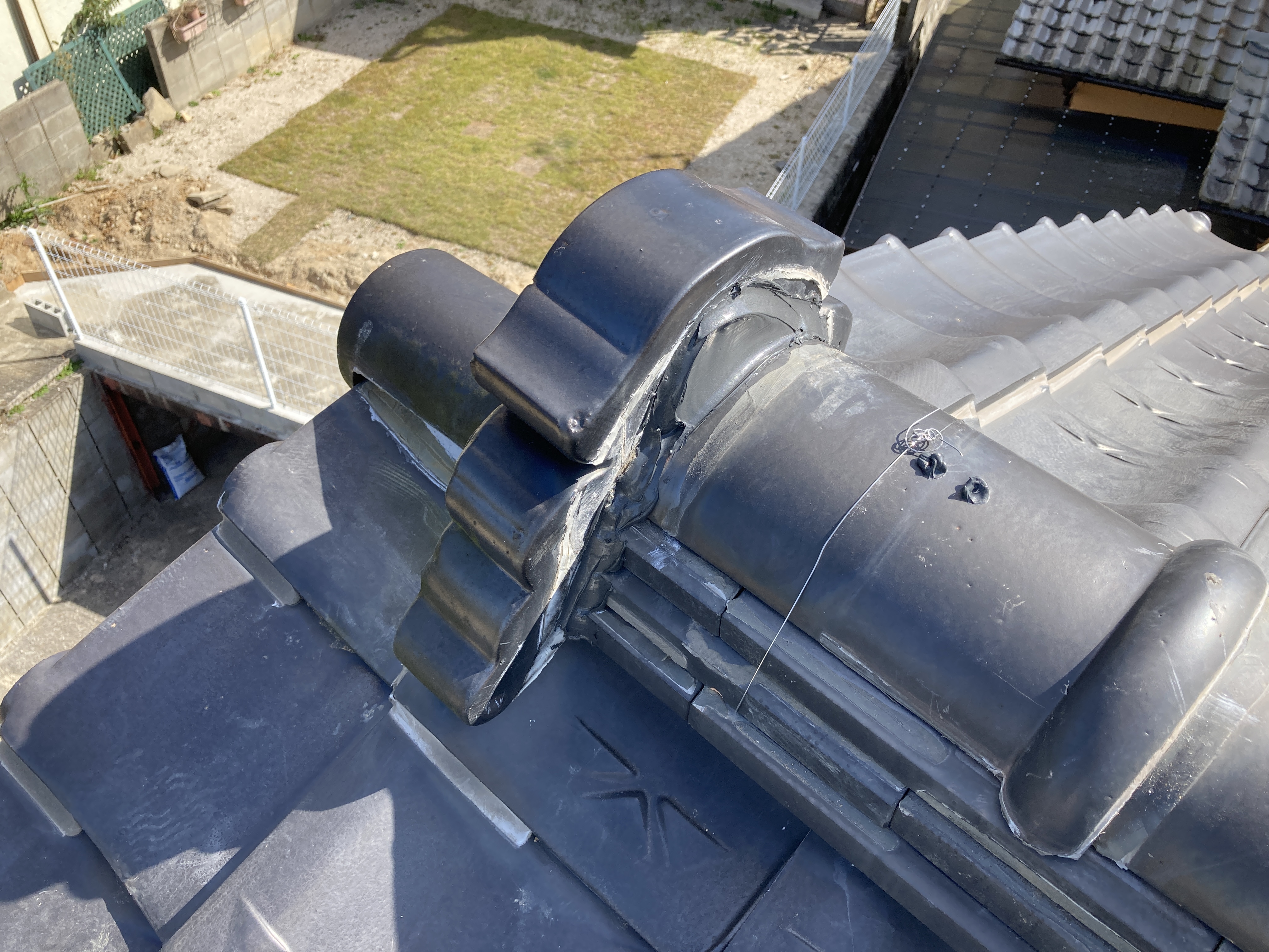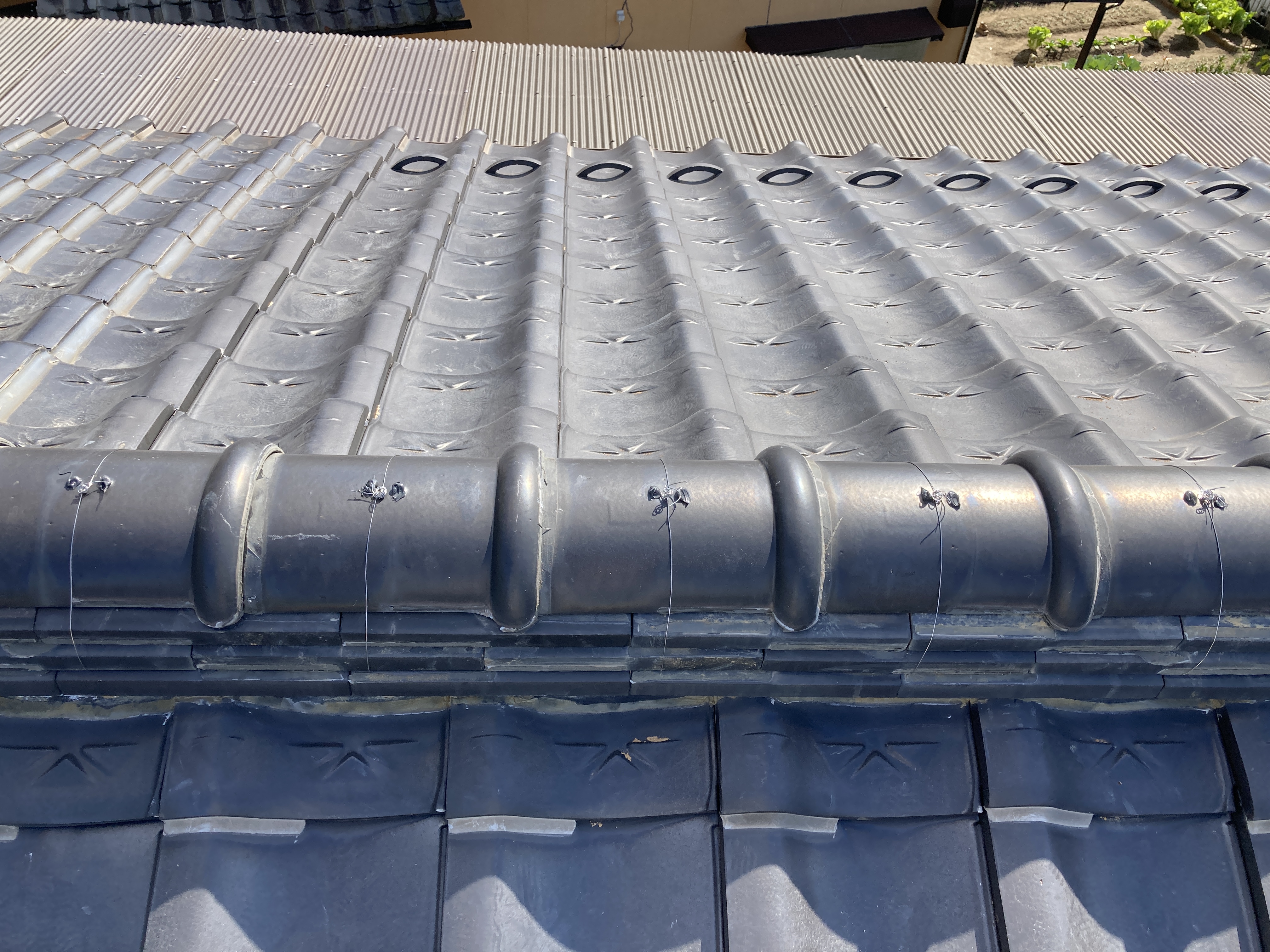 地瓦の瓦止めにつきましては、縦部分のみ充填されておりました部分の山部分を止め直して参りました。