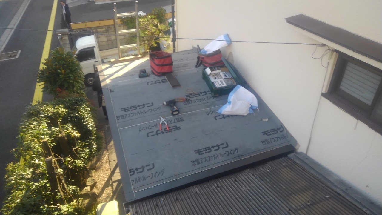 まずは、ルーフィングを敷いていきます。