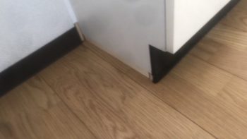 下の写真にあるようにキッチンの正面はコーキング作業完了しましたが、側面の白い部分の材料不足により完結できませんでした。