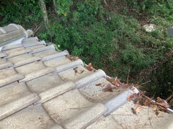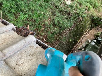 屋根にかかっていた枝はカットし、落ち葉の撤去を行いました。