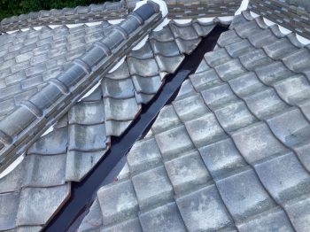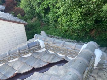 のし瓦の継ぎ手上部に、コーキングにて処理していきました。