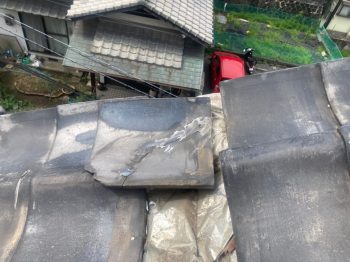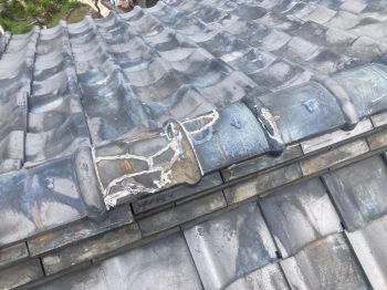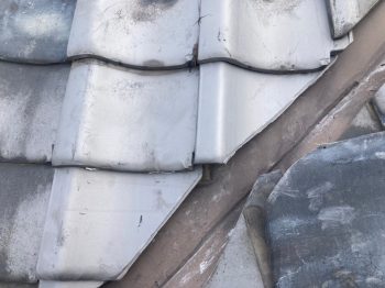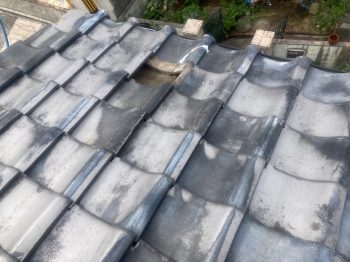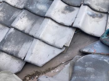 棟のがんぶり瓦が老朽化により粉々に割れていました。