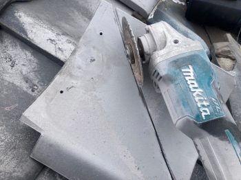 最後に谷周りのカット瓦を現場加工し差し替えていきます。