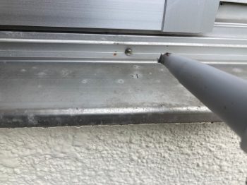 前回雨漏りの点検をさせていただいた際、サッシ廻りと水切りの板金が入り口になっている可能性がありますので、今回はその箇所の作業となります