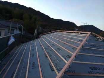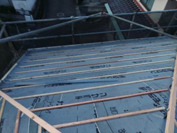 ルーフィングまで行っておりましたので、桟木の設置をメインに行なっていきまそた。