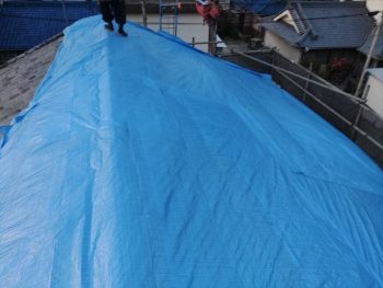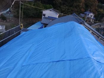 ブルーシートで養生をし離れております。