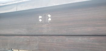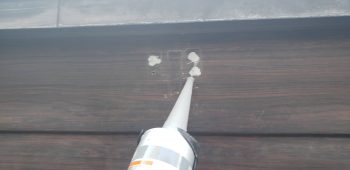 次にもともと雨どいの金具が付いていたビス穴をコーキングで埋め戻し、塗装の下準備とします