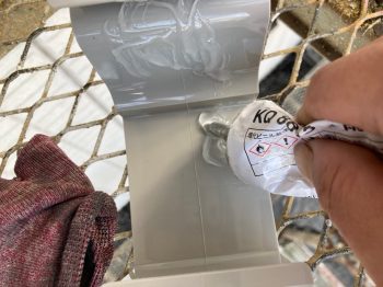 雨樋には雨樋専用の接着剤があり、それを使用して取り付けて行きます