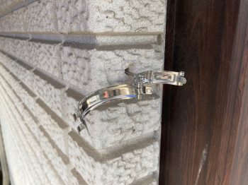 竪樋の金具取り付け状況です。金具はすべてステンレス製ですのでご安心下さい。