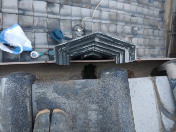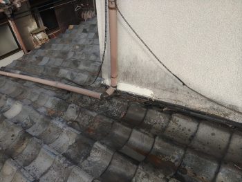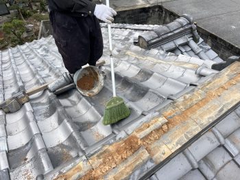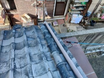 次に、今回の雨漏りの直接の原因である雨どいの詰まりや、壁際の瓦の補修に入ります
