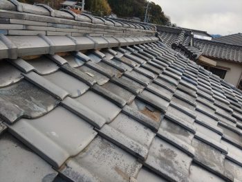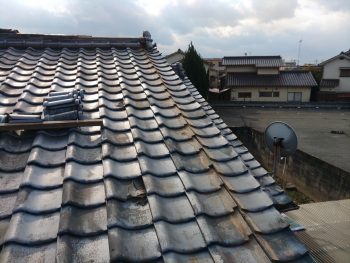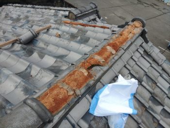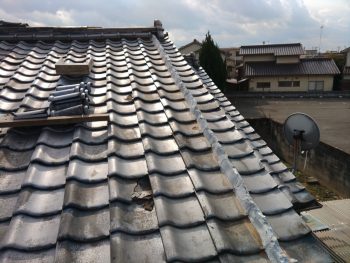 形の違う瓦がいろいろ入っていたため、隙間が多く、雨水が侵入しておりましたので、まずは解体していきます