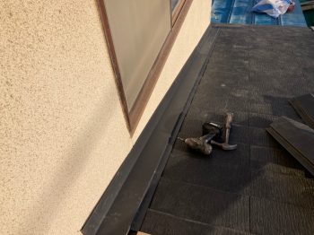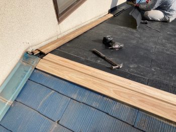 貫板を、壁と棟部分に取り付け、板金を被せて、ビスで固定をし完了です。