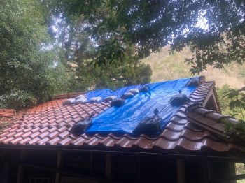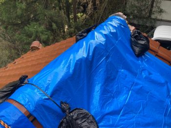 上記でも述べたように瓦は復旧できても、吹き降りなどで瓦の裏に回ったとき、雨が漏れることのないようにブルーシートをかけて行きます。