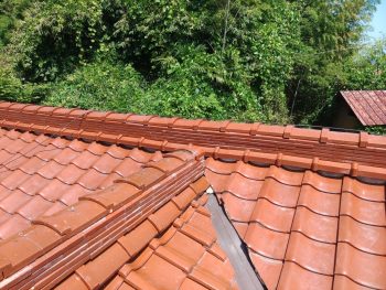 本日は屋根補修工事最終日となります。最終日の今日は昨日解体した棟を復旧していきます。
