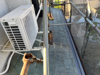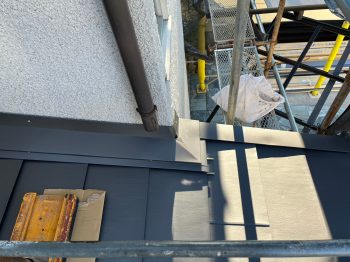 最後に残った1階屋根部分の軒先に専用の板金を取り付けて本日の作業は以上となります。